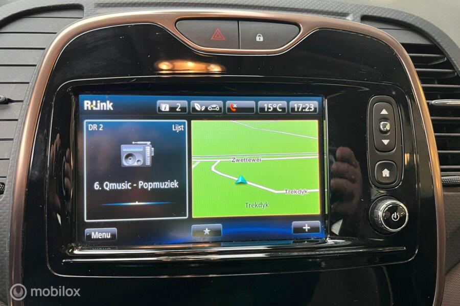 De kortste weg, de zuinigste weg, de snelste weg... elke weg is te vinden met het full map navigatiesysteem. Aan boord van deze Renault Captur is een achteropkomend verkeer waarschuwing voor extra veiligheid. Laat u niet afleiden door gerommel aan de audioknoppen. De audiobediening op het stuur zorgt dat u altijd geconcentreerd blijft. Voor een storingvrije radio-ontvangst zorgt de ingebouwde DAB-ontvanger. De meeste schade bij inparkeren komt van een randje of paaltje dat u even niet zag. Maar de parkeersensoren zien alles en waarschuwen op tijd. En deze auto heeft ook cruise control, airconditioning, lederen stuur, isofix-aansluiting, centrale deurvergrendeling met afstandsbediening en boordcomputer als standaard uitrusting.